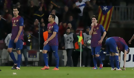 3كۈن ئىچىدە بارسلۇنا كوماندىسى بۇ پەسىلدىكى ئەڭ مۇھىم بولغان 2لۇڭقىدىن قۇرۇق قالدى .ئالدىنقى ھەپتە ئۆتكۈزلگەن ئىسپانىيە بىرلەشمە مۇسابىقىسدە ساھىبخان مەيداندا خان مادىرىت كوماندىسغا ئۇتتۇرۇپ ،يەنە 4ئايلانما بىرلەشمە مۇسابىقە قالغان ئەھۋال ئاستىدا خان مادىرىت كوماندىسىدىن 7نۇمۇر ئارقىدا قېلىپ، ئىسپانىيە بىرلەشمە چېمپيۇنلۇق لۇڭقىسىدىن خوشلاشتى .72سائەتتىن كىيىن يەنە ياۋۇرپا چېمپيۇنلۇق لۇڭقىسى يېرىم ھەل قىلغۇچ مۇسابىقىدە ئېنگىلاند زەردارى چېلسى كوماندىسى تەرىپىدىن شاللىنىپ ياۋۇرپا چېمپيۇنلۇق لۇڭقىسىدىنمۇ خوشلاشتى .
