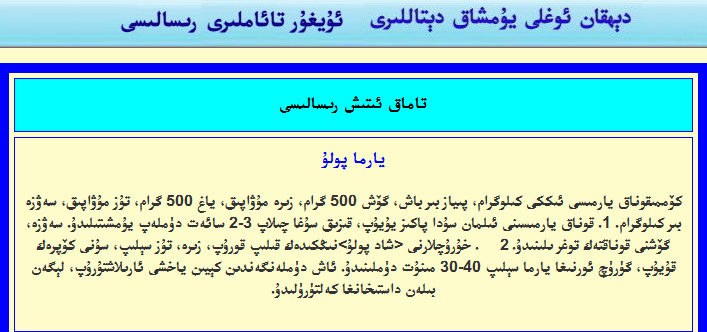 دەرىس ئۇيغۇر تائاملىرى رىسالىسىلۇغەت |